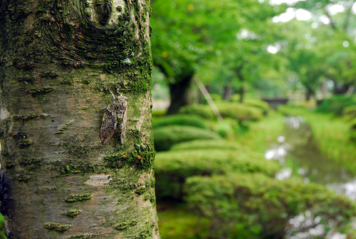 桜が好きなニイニイゼミの蝉時雨が曲水の並木で聞かれました。