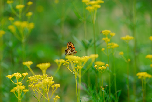 オミナエシが沢山咲き始めています。ひょろりとした背の高い茎に咲く姿はとても優しげです。その魅力に惹かれるのかいろんな虫たちが寄ってきます。蝶はもちろん今朝は蝉までがやってきて茎にしがみつきながら登ったり下りたりしていました。