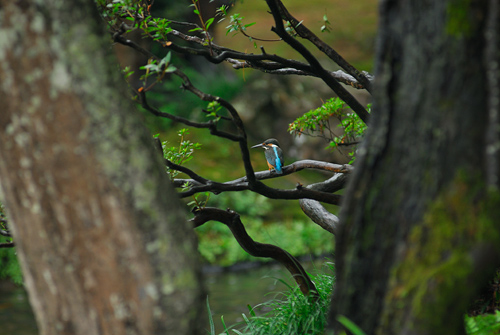ほぼ毎朝のように兼六園にカワセミがやってきますが、1羽か2羽しかいないのとあまりにも小さいためなかなか見つけることが出来ません。たまに目にするとその美しい姿に魅了されその日一日がいい日になるような気になります。さしずめ兼六園の幸せの青い鳥といったところでしょうか。