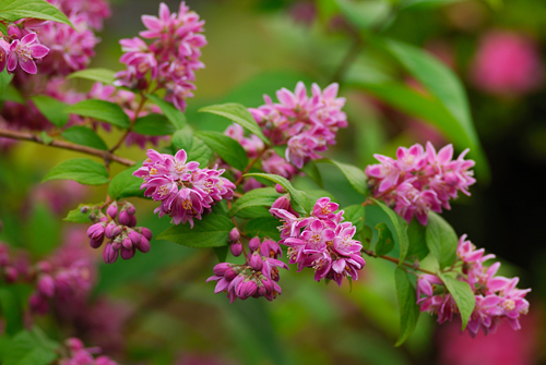 梅林の片隅に鮮やかなピンクの花が咲いていました。空木のようですがちょっと見たことがないので調べてみると園芸種の「アカハナウツギ(紅花梅花ウツギ・マギシェン)」でした。よく見るととても品よく可憐な花で心惹かれるものがありました。